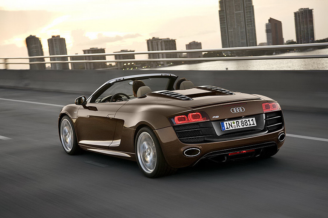 Audi R8 Spyder excels at making performance and quiet enough accessed by all drivers. It's smooth and comfortable in traffic, light clutch and steering wheel accurately. Most cars will be equipped with the optional Audi R tronic automatic, good in traffic but a bit slow to change gear when you enjoy a full performance for the R8. It will reach 62mph in V10 guise in just 4.1 seconds - a super fast. High grip and traction is fantastic thanks to Audi's quattro four-wheel, while the big brakes provide exceptional stopping power while on the road or track. The speed of this car can not doubt, because the Audi R8 Spyder Convertible has 560 horsepower and a top speed of 197 mph, we can not deny that this would be the most appealing Audi to drive.